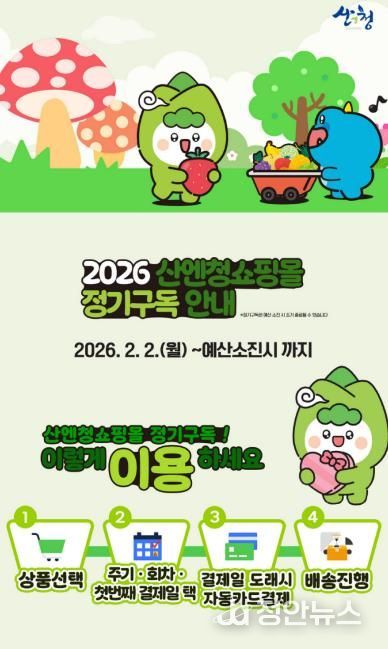 정안뉴스 김재홍 기자 | 산청군은 지역 농·특산물 온라인 장터인 ‘산엔청쇼핑몰’에서 정기구독관 운영을 본격적으로 시작한다고 2일 밝혔다.