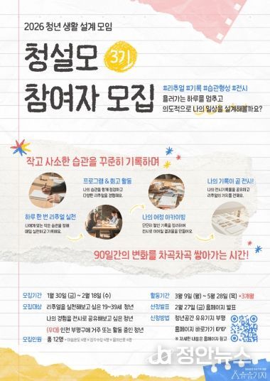 유유기지 부평 관계자는 “청설모는 청년들이 자신의 생활을 주도적으로 설계하고, 기록을 통해 변화를 체감할 수 있도록 돕는 프로그램”이라며 “함께 실천하고 서로를 응원하는 과정을 통해 청년들의 일상에 긍정적인 변화가 쌓이길 기대한다”고 말했다.