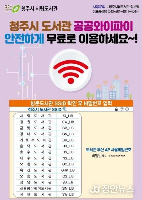한편 청주시립도서관은 이용자의 안전한 무선 네트워크 환경 조성을 위해 보안 점검과 관리체계 강화에도 지속적으로 힘쓸 계획이다.