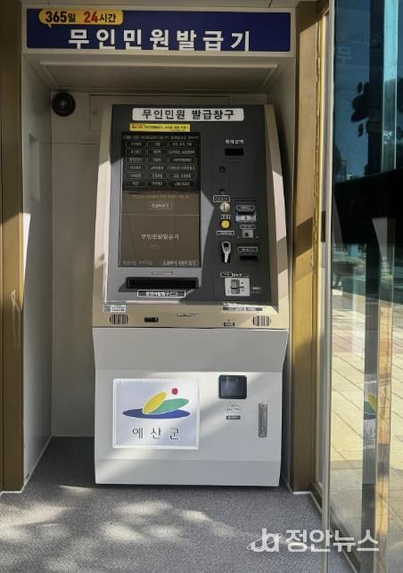 정안뉴스 황도연 기자 | 예산군은 지난 26일 예산군청(실외)과 예산읍(실외)에 설치된 노후 무인민원발급기 2대를 교체했다.