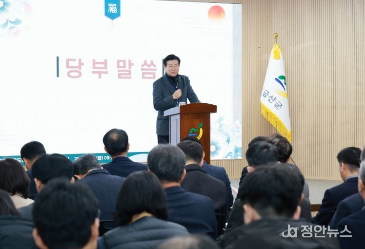 정안뉴스 황도연 기자 | 박범인 금산군수는 지난 3일 군청 다목적회의실에서 열린 월례회의에서 “매일 새로운 결심을 하는 게 인생”이라며 “연초 결심을 담담하게 연말까지 이어가자”고 당부했다.