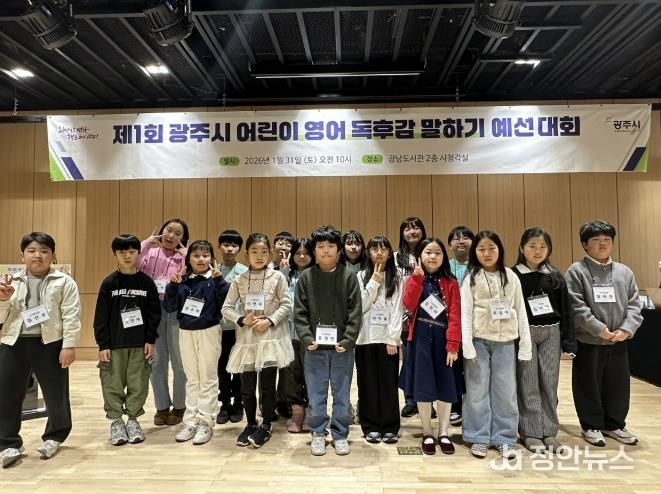 정안뉴스 안정주 기자 | 광주시는 어린이들의 영어 독서 습관 형성과 영어 말하기 능력 향상을 위해 2026년 ‘제1회 광주시 어린이 영어 독후감 말하기 대회’ 예선 대회를 지난 1월 31일 광남도서관 2층에서 개최했다고 4일 밝혔다.