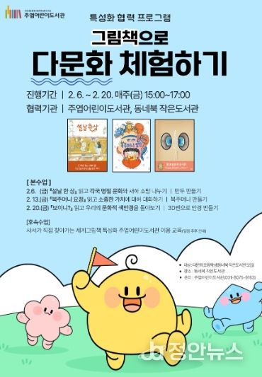 정안뉴스 안정주 기자 | 고양특례시 주엽어린이도서관은 겨울방학을 맞아 다문화 초등학생을 대상으로 특성화 협력 프로그램 ‘그림책으로 다문화 체험하기’를 운영한다.