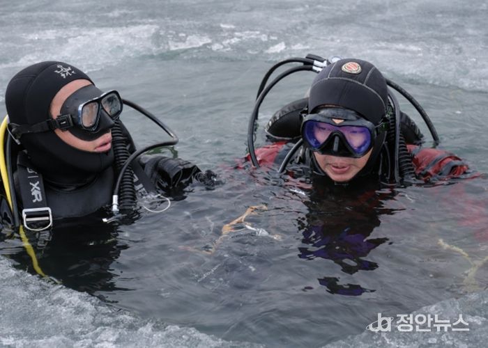 주요 훈련 내용으로는 입·출수구 확보훈련을 통해 안전하고 체계적인 구조 기반을 다지고, 얼음 밑 잠수 적응훈련으로 극한 환경에서도 침착하게 대응할 수 있는 현장 역량을 강화했다.