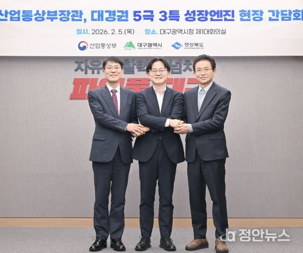 정안뉴스 안정주 기자 | 대구광역시는 2월 5일 대구광역시청 산격청사에서 김정관 산업통상부 장관 주재로 ‘대경권 5극 3특 성장엔진 전략산업 현장간담회’를 개최했다고 밝혔다.