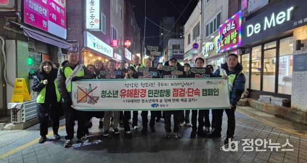 정안뉴스 황정혜 기자 | 부산시 영도구는 겨울방학을 맞아 청소년 유해업소, 유해약물 및 유해물건 등으로부터 청소년을 보호하기 위해 지난 2월 4일 남항동 일원에서 ‘겨울방학 대비 청소년 유해환경 지도·점검 캠페인’을 실시했다.
