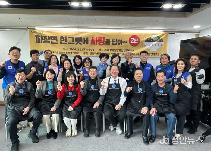 정안뉴스 안정주 기자 | 남양주시는 5일 한국자유총연맹 남양주시지회가 설 명절을 맞아 금곡동 복지회관에서 관내 지체장애인 100여 명을 대상으로 짜장면 나눔 행사를 진행했다고 밝혔다.