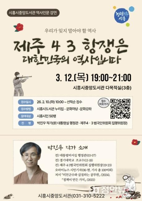 정안뉴스 안정주 기자 | 시흥시중앙도서관은 오는 3월 12일 오후 7시, 시민을 대상으로 역사 인문 강연 ‘제주 4ㆍ3항쟁은 대한민국의 역사입니다’를 운영한다.