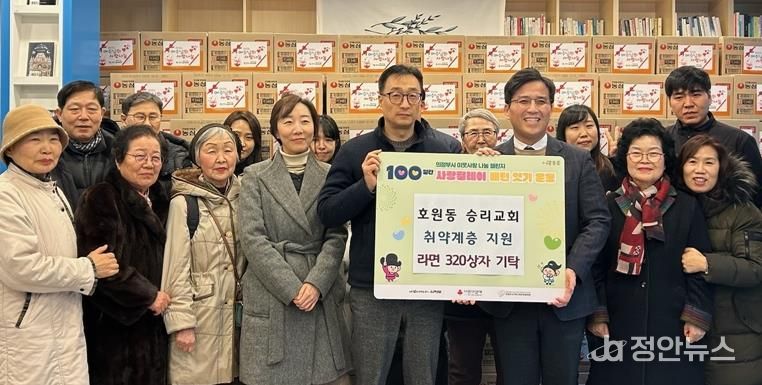 정안뉴스 안정주 기자 | 의정부시 호원2동주민센터는 2월 4일 호원동에 위치한 승리교회가 설 명절을 맞아 관내 취약계층을 위해 라면 320상자를 기탁했다고 밝혔다.