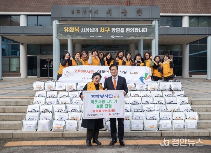 정안뉴스 안정주 기자 | 인천광역시 서구는 지난 5일 호박봉사단(단장 최정옥)으로부터 설명절 먹거리 꾸러미 150박스를 전달받았다.