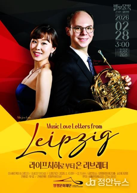 정안뉴스 안정주 기자 | 양평문화재단은 오는 28일 오후 3시, 양평문화재단 2층 시어터양평에서 ‘별빛물빛 콘서트 in 양평’ 2월 정기공연으로 클래식 공연 《라이프치히로부터 온 러브레터(Music Love Letters from Leipzig)》를 선보인다.