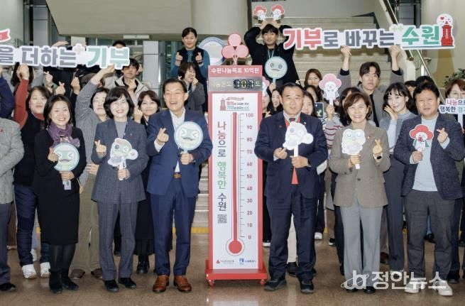 정안뉴스 안정주 기자 | 수원특례시 ‘사랑의 온도탑’이 올해도 100℃를 넘겼다.