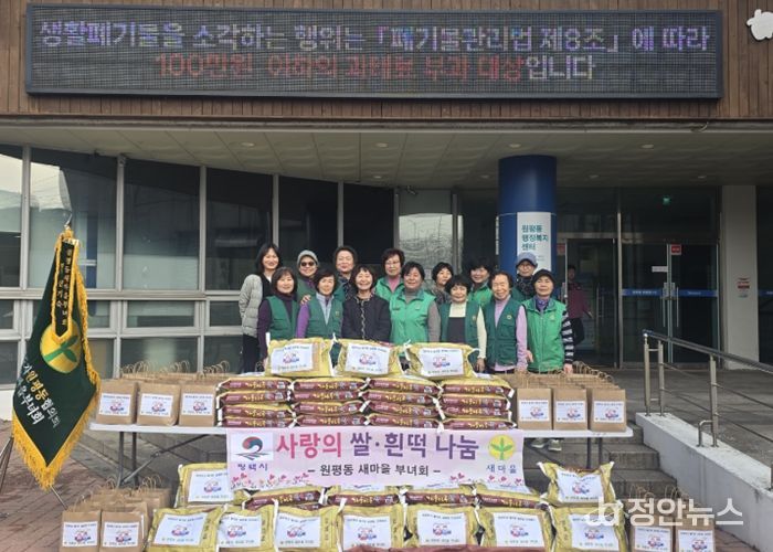 원평동 새마을부녀회에서는 관내 취약계층이 풍성하고 행복한 새해를 맞이할 수 있도록 매년 이웃들에게 쌀과 떡국떡을 전달하며 이웃사랑을 실천하고 있다.