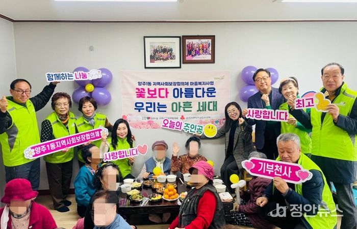 정안뉴스 안정주 기자 | 양주시 양주1동은 지역사회보장협의체가 최근 정서적 고립감을 느끼는 산북4통 90세 이상 어르신들을 대상으로 경로당에서 '꽃보다 아름다운 우리는 아흔 세대' 사업을 추진했다고 밝혔다.