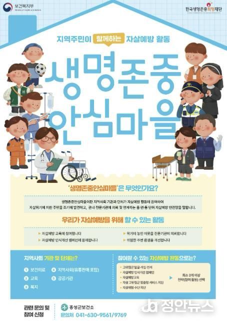 정안뉴스 황도연 기자 | 홍성군은 지역사회의 참여를 바탕으로 한 자살예방 안전망 구축을 위해 ‘2026년 함께 만드는 생명존중안심마을’ 운영에 참여할 기관·단체를 모집한다고 밝혔다.
