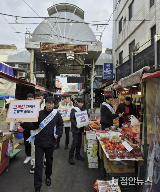 정안뉴스 황도연 기자 | 아산시가 지난 5일 온양온천시장에서 온양온천상인회와 함께 ‘전통시장 고객선 지키기 및 아산페이 이용 활성화 캠페인’을 실시하며 안전하고 쾌적한 시장 환경 조성에 나섰다.