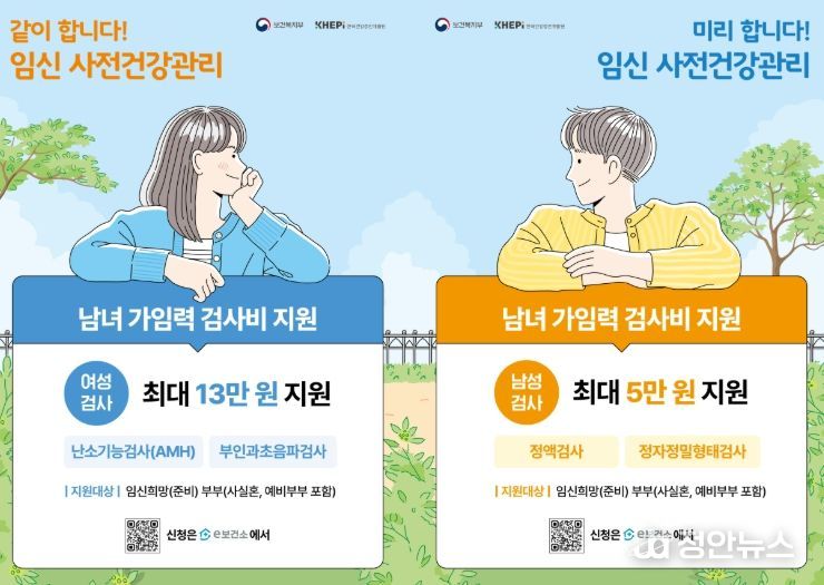 여성은 최대 13만 원, 남성은 최대 5만 원까지 검사비를 지원받을 수 있다.