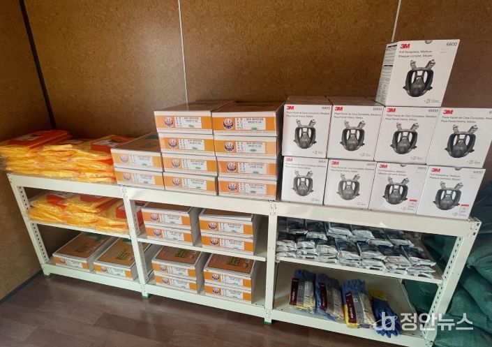 컨테이너 형태의 방재함 내부에는 보호복, 흡착제, 중화제 등 다양한 방재 물품이 비치되어 있어, 남동산단에 산재되어 있는 660여 개의 화학물질 취급 사업장의 사고 발생 시 초기 대응에 큰 도움이 될 것으로 기대된다.
