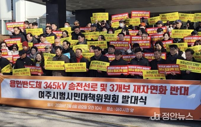 정안뉴스 안정주 기자 | 여주시는 지난 6일 '여주시 범시민 대책위원회'로부터 345kV 송전선로의 여주시 통과와 여주 남한강 3개 보 재자연화와 개방을 반대하는 두 개의 결의문을 전달받았다. 이 자리에서 이충우 시장은 “시민 여러분의 뜻을 받들어 시장으로서 중앙정부에 여주 시민의 간절한 마음을 잘 전달하겠다”는 뜻을 밝혔다.