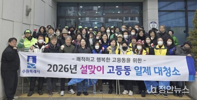 정안뉴스 안정주 기자 | 수원시 팔달구 고등동은 지난 6일, 설 명절을 맞아 고등동 관내에서 주민과 직원이 함께하는 ‘설맞이 대청소’를 실시했다.