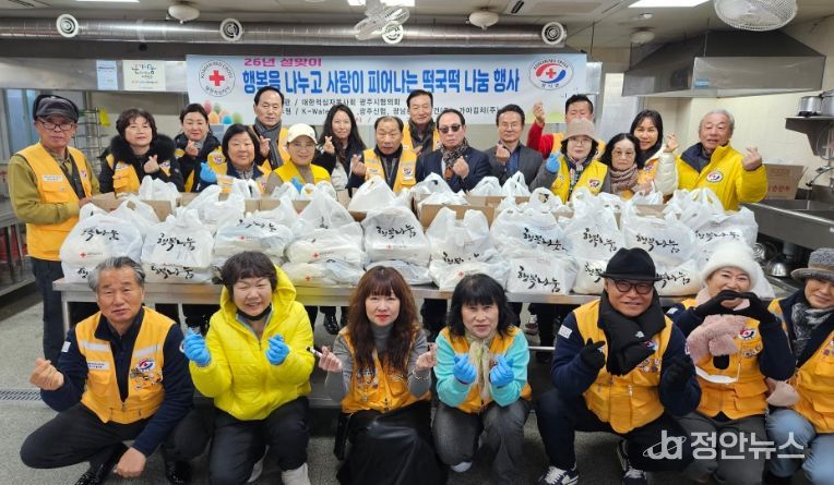 정안뉴스 안정주 기자 | 대한적십자사봉사회 광주시협의회는 9일 광주시 자원봉사센터에서 지역 내 소외된 이웃을 지원하기 위한 ‘사랑의 떡국 꾸러미 나눔 행사’를 개최했다.