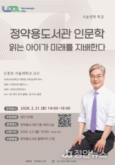 정안뉴스 안정주 기자 | 남양주시는 오는 2월 21일 정약용도서관 3층 세미나실에서 겨울방학 인문학 특강 ‘읽는 아이가 미래를 지배한다’를 개최한다고 9일 밝혔다.