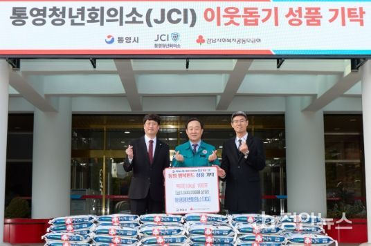 정안뉴스 김재홍 기자 | 통영청년회의소(회장 박현준)에서는 지난 6일 설 명절을 맞아 지역 내 취약계층 지원을 위해 백미(10kg) 100포(금 350만원 상당)를 통영시(시장 천영기)에 기탁했다.