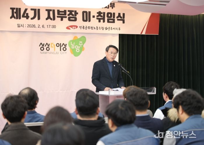 정안뉴스 안정주 기자 | 남양주시는 6일 시청 여유당에서 전국공무원노동조합 남양주시지부가 제4기 지부장 이·취임식을 열었다고 9일 밝혔다.