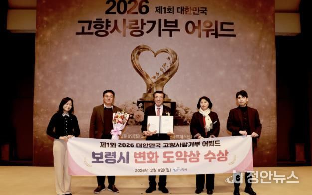 정안뉴스 황도연 기자 | 보령시는 ‘제1회 2026 대한민국 고향사랑기부 어워드’에서 시 부문 변화도약상을 수상했다고 밝혔다.