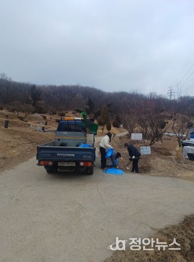 정안뉴스 안정주 기자 | 광주시 오포1동은 설 명절을 앞두고 10일 성묘객 편의 제공과 쾌적한 성묘 환경 조성을 위해 공설·공동묘지 환경정비를 실시했다.