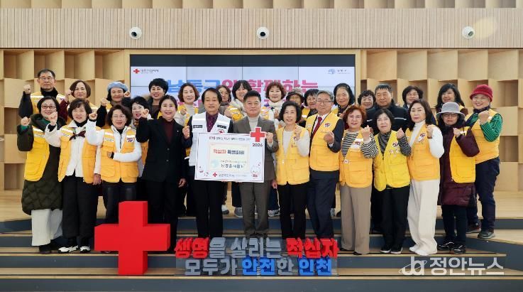 정안뉴스 안정주 기자 | 인천시 남동구는 2026년도 적십자 특별회비 전달식을 개최하고 대한적십자사 인천지사에 200만 원을 전달했다고 12일 밝혔다.