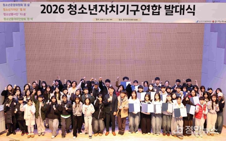 정안뉴스 안정주 기자 | 인천중구시설관리공단(이사장 손영식)에서 운영하는 중구청소년수련관은 지난 7일 수련관 공연장에서 ‘2026 청소년자치기구 연합 발대식’을 개최했다.