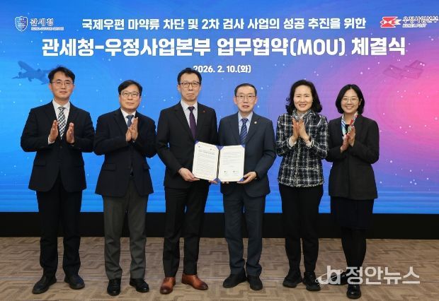 정안뉴스 안정주 기자 | 관세청과 과학기술정보통신부 우정사업본부(본부장 직무대리 곽병진)는 2월 10일 서울세관에서 국제우편을 통한 마약류 반입을 원천 차단하기 위해 '국제우편 마약류 차단 및 2차 검사 사업의 성공 추진을 위한 업무협약(MOU)'을 체결했다.