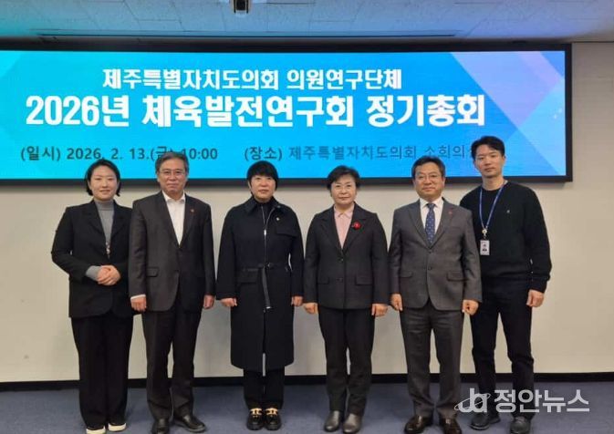 정안뉴스 안정주 기자 | 제주특별자치도의회 의원연구단체 체육발전연구회가 2월 13일 2026년 정기총회를 열고 그간 연구 성과를 공유하며 올해 운영 방향을 논의했다.