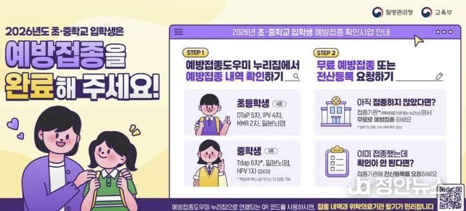 보건소는 교육부와 협력하여 매년 초·중학교 입학생의 필수 예방접종 기록을 확인하고 접종을 독려하고 있다.