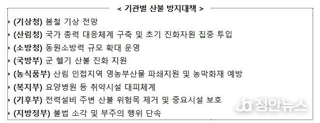 이날 회의에서는 국가 총력 대응체계와 기관별 점검·단속, 홍보 등 예방 중심의 산불 방지대책을 공유하고, 기관 간 협력 방안을 논의했다.