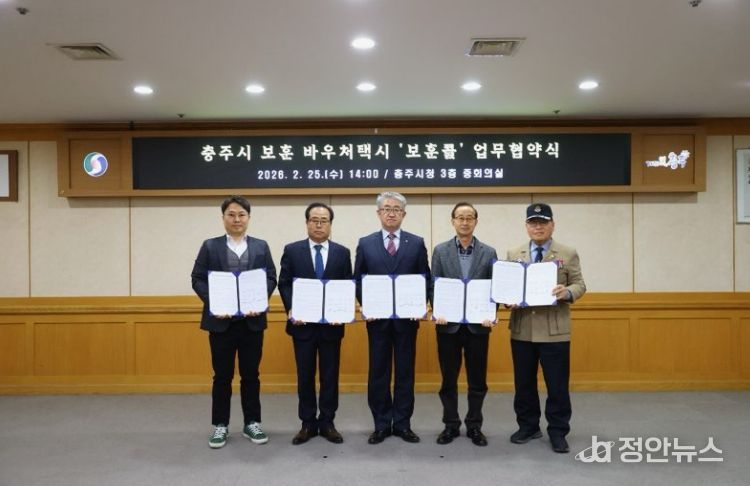 정안뉴스 황은경 기자 | 충주시는 25일 시청 3층 중회의실에서 70세 이상 국가보훈대상자의 이동 편의 증진을 위해 보훈대상자 바우처 택시 ‘보훈콜’사업 업무 협약을 체결했다고 밝혔다.