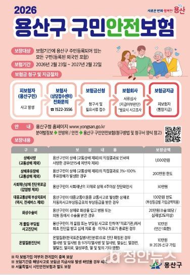 정안뉴스 안정주 기자 | 서울 용산구가 2026년에도 전 구민을 대상으로 ’구민안전보험’을 확대 운영한다.