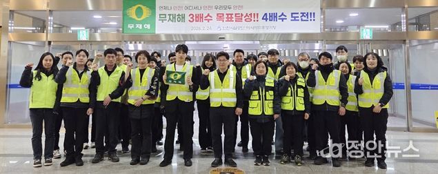 정안뉴스 안정주 기자 | 인천시설공단(이사장 김재보) 아시아드경기장사업단이 지난 23일, 무재해 3배수(1,326일)를 달성하고 4배수 달성을 위한 결의대회를 실시했다.