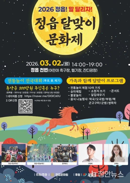 현재 문화원은 투호와 제기차기 종목의 참가자를 선착순으로 접수하고 있다. 참가를 원하는 시민은 QR코드를 이용하거나 정읍문화원으로 전화해 신청하면 된다.