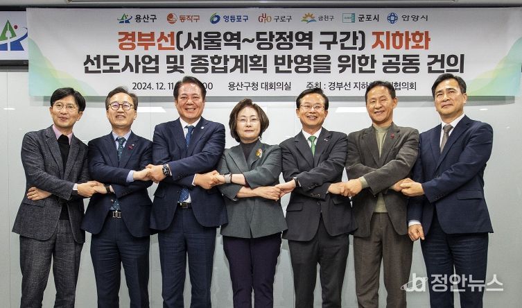 정안뉴스 안정주 기자 | 경부선 지하화 추진협의회가 오는 3월 4일 용산역 일대에서 ‘철도지하화 종합계획 발표 촉구’를 위한 공동성명서를 발표한다. 협의회에는 서울 용산구·동작구·영등포구·구로구·금천구와 경기 안양시·군포시 등 7개 기초지자체가 참여하고 있다.
