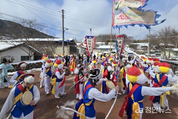 행사는 새해의 풍년과 안녕을 기원하는 기굿을 시작으로 당산제, 샘굿, 마당밟이, 판굿 순으로 진행된다.