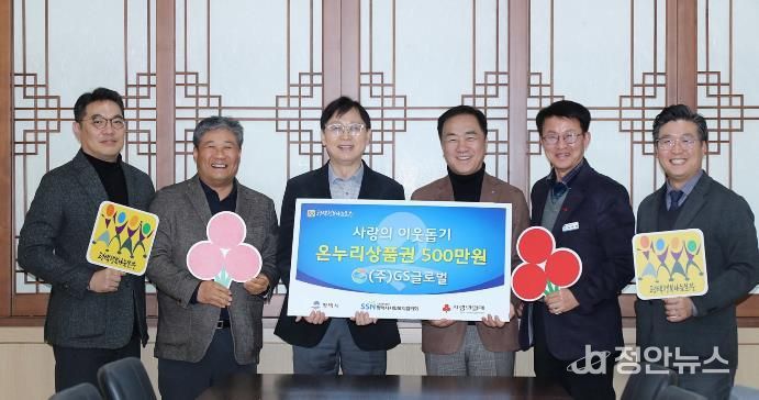 정안뉴스 안정주 기자 | ㈜GS글로벌, ㈜PLS(㈜GS글로벌 자회사)는 지난 23일 영유아를 지원하기 위해 온누리상품권 500만 원을 평택행복나눔본부에 전달했다.