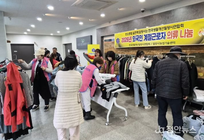 정안뉴스 김재홍 기자 | 한국생활개선밀양시연합회(회장 안화영)는 27일 밀양시농업기술센터 농업인교육관에서 2024년부터 3년째 이어오고 있는 외국인 계절 근로자를 위한 ‘사랑의 의류 나눔 행사’를 개최했다.