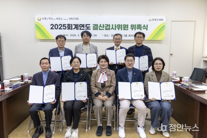 정안뉴스 안정주 기자 | 강북구의회가 지난 2월 26일 의회 3층 의원회의실에서 2025회계연도 결산검사위원 위촉식을 열고, 위원들에게 위촉장을 수여했다.