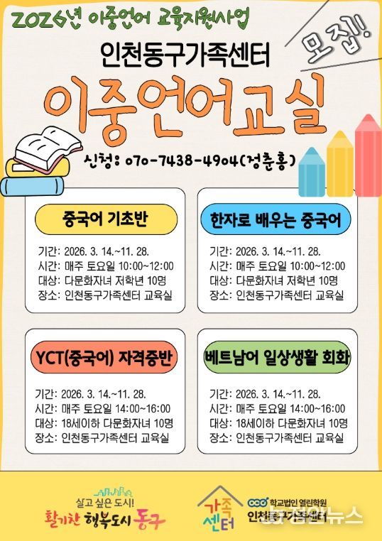 한편, 인천동구가족센터는 다문화가족의 안정적인 정착과 성장을 위해 다양한 가족지원 사업을 추진하고 있으며, 자세한 내용은 센터 홈페이지에서 확인할 수 있다.