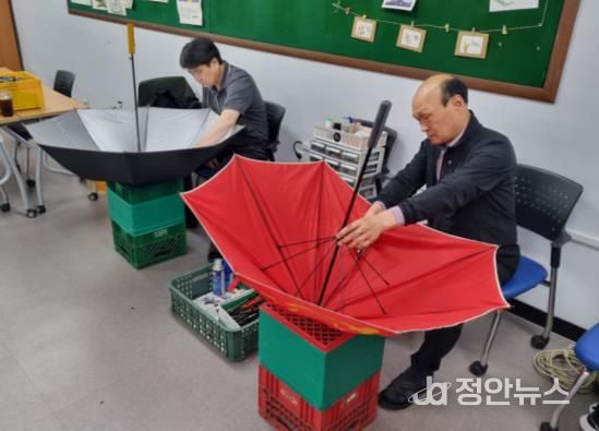 정안뉴스 안정주 기자 | 인천광역시 계양구는 폐우산 재활용을 통한 자원순환과 일자리 창출을 위해 지역공동체일자리 사업의 일환으로 우산수리 재활용 사업을 추진하고 있다.
