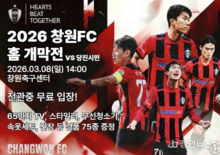 정안뉴스 김재홍 기자 | K3리그 창원FC가 오는 3월 8일 오후 2시 창원축구센터에서 당진시민축구단을 상대로 2026시즌 홈 개막전을 치른다.