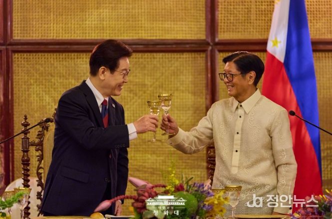 정안뉴스 안정주 기자 | 필리핀을 국빈 방문 중인 이재명 대통령 부부는 3일 저녁, 페르디난도 로무알데즈 마르코스 주니어 대통령이 필리핀 말라카냥궁에서 주최한 만찬에 참석했다.