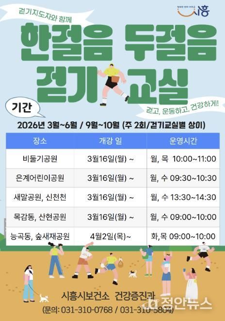 정안뉴스 안정주 기자 | 시흥시는 시민들의 일상 속 걷기 실천을 장려하고 건강생활 습관 형성을 돕기 위해 ‘한 걸음 두 걸음 걷기교실’을 운영한다.
